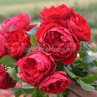 Флорентина - ярко-красные цветки с желтым глазком, розетковидной формы, густомахровые (26 - 40 лепестков), обладают легким фруктово-цветочным ароматом. Цветение очень обильное, непрерывное с июня по сентябрь. Благодаря очаровательным цветкам и здоровой глянцевой листве, эта роза очень подходит для беседок, павильонов и озеленения стен дома.